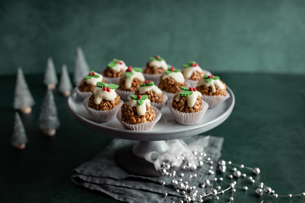 Who doesn’t love Mars Bar Krispie Treats? We certainly do! And what’s better than that? These cute little Christmas puddin’s! This is a fun one to make with the kids and they make lovely gifts. If you don’t have the patience to cut out fondant holly leaves and roll little berries, you can also find ready-made royal icing holly leaf toppers in most grocery stores in the baking aisle.